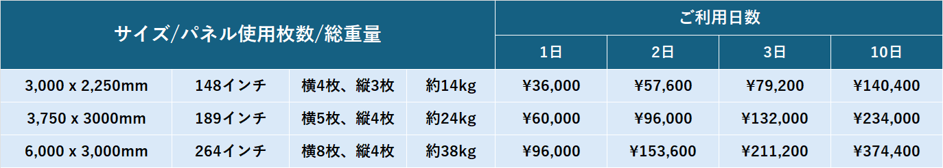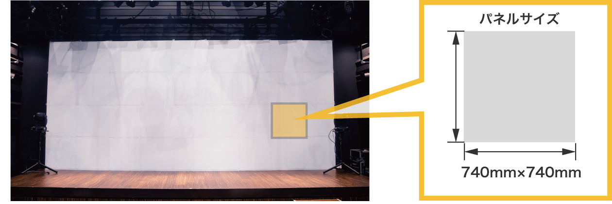 740mm四方のパネルを組み合わせることで、サイズの異なるスクリーンを誰でも簡単に構築することが可能です。